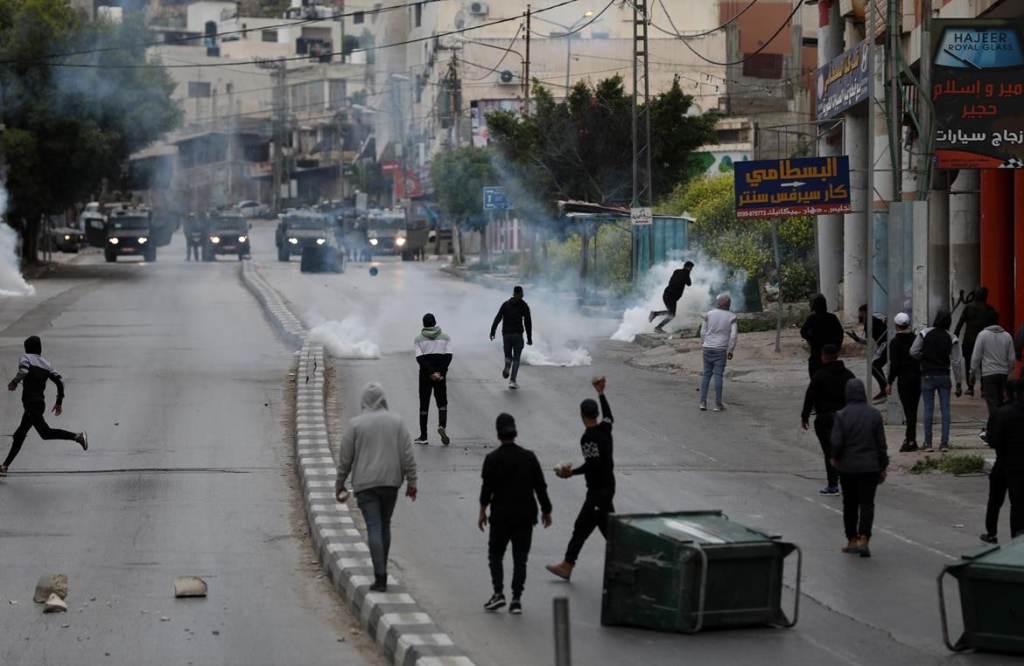 שכם -13.04.2022 Nablus, occupied Palestinian territoried Clashes between the Israeli army and local youth resume