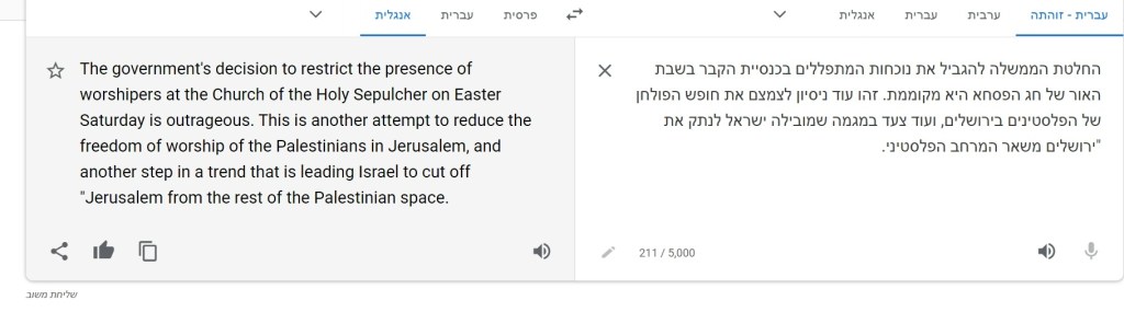 The government’s decision to restrict the presence of worshipers at the Church of the Holy Sepulcher on Easter Saturday is outrageous.