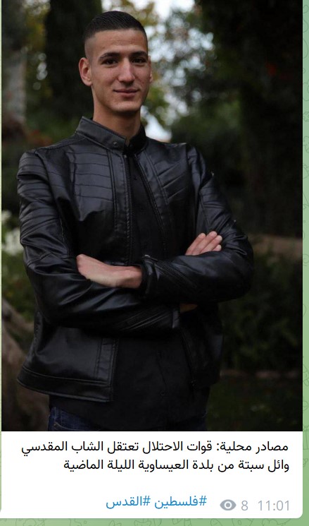 נעצר וואיל סבאתה, מן הכפר עיסאוויה במזרח ירושלים