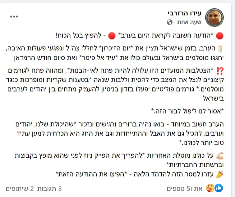 פורסם במקור בפייסבוק בחשבון של עידן הרזרבי