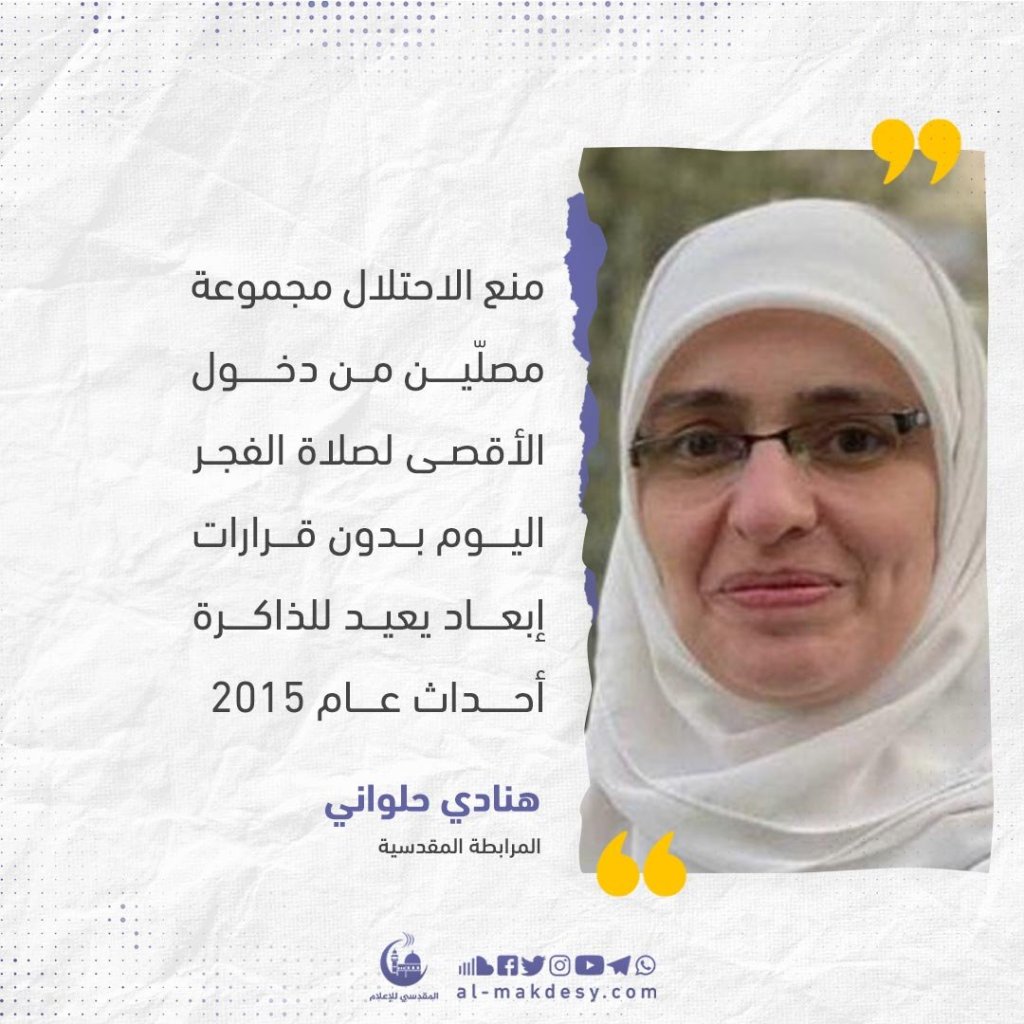הנאדי חלוואני הירושלמית: הכיבוש מנע מקבוצת מתפללים להיכנס היום לתפילת השחר #אל-אקצא, ללא החלטות גירוש שמזכירות לנו את אירועי 2015.