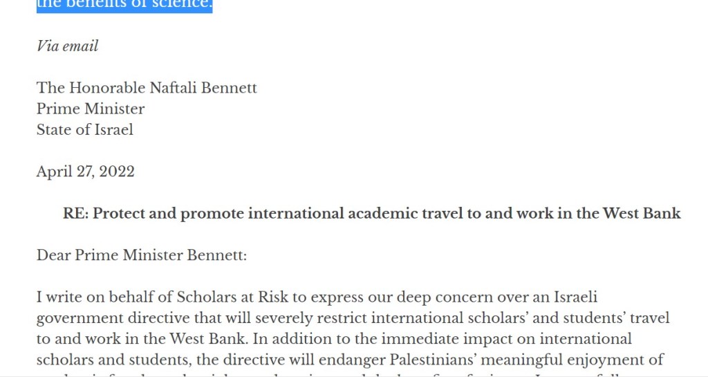 Response to “MESA & SAR protest new Israeli directives on Int’ls travel to the west Bank”