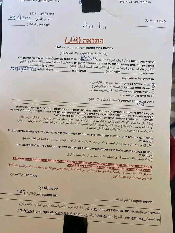 Local sources: “The Israeli authorities notify the demolition of a chapel in the village of Wadi al-Neam in the Negev.”