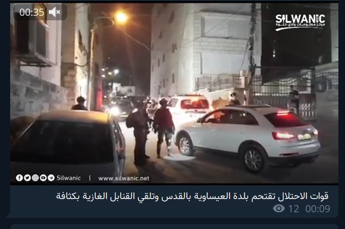 Issawia village is located in East Jerusalem Al-Quds. It was also reported that the Israeli army fired a lot of tear gas during the raid