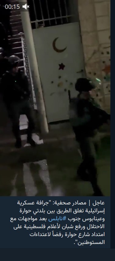 לאחר עימותים עם כוחות הכיבוש, ובני נוער שהניפו דגלי פלסטין לאורך רחוב חווארה, והודפים את התקפות המתנחלים”.