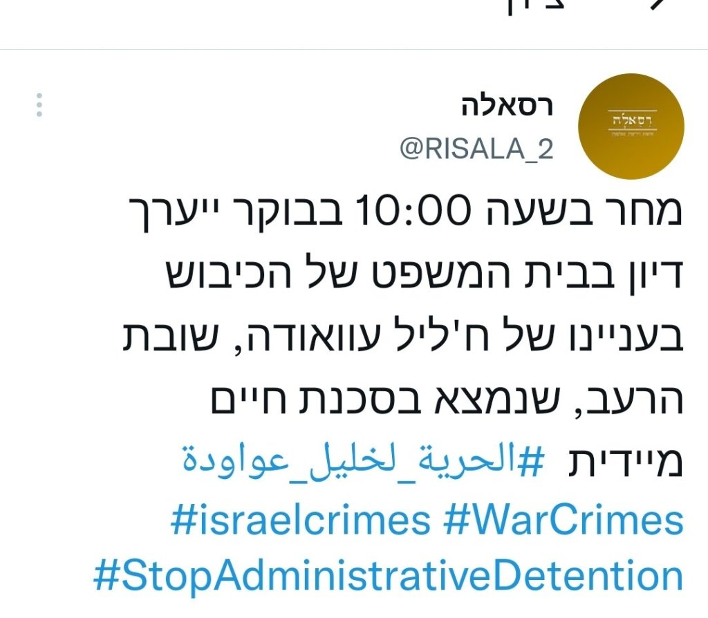 דיווח סוכנות הידיעות הפלסטינית ריסאלה בטוויטר (29.08.2022) וגם סוכנות